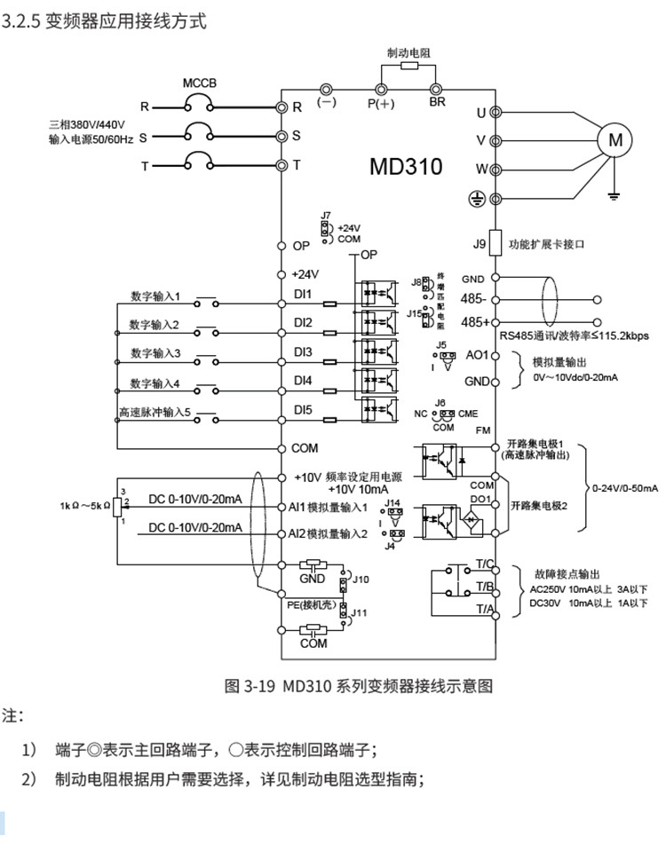 匯川變頻器MD310系列MD310 系列變頻器是一款通用緊縮型多功能變頻器,采用開環矢量和V/F 控制方式,以高性能的電流矢量控制技術可實現異步電機控制。MD310 標配RS485 通訊接口,支持Modbus RTU 通訊,可擴展I/O 擴展卡、CAN 通信擴展卡。內置PID 可方便實現閉環過程控制系統,最多可實現16 段速運行。